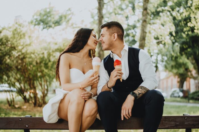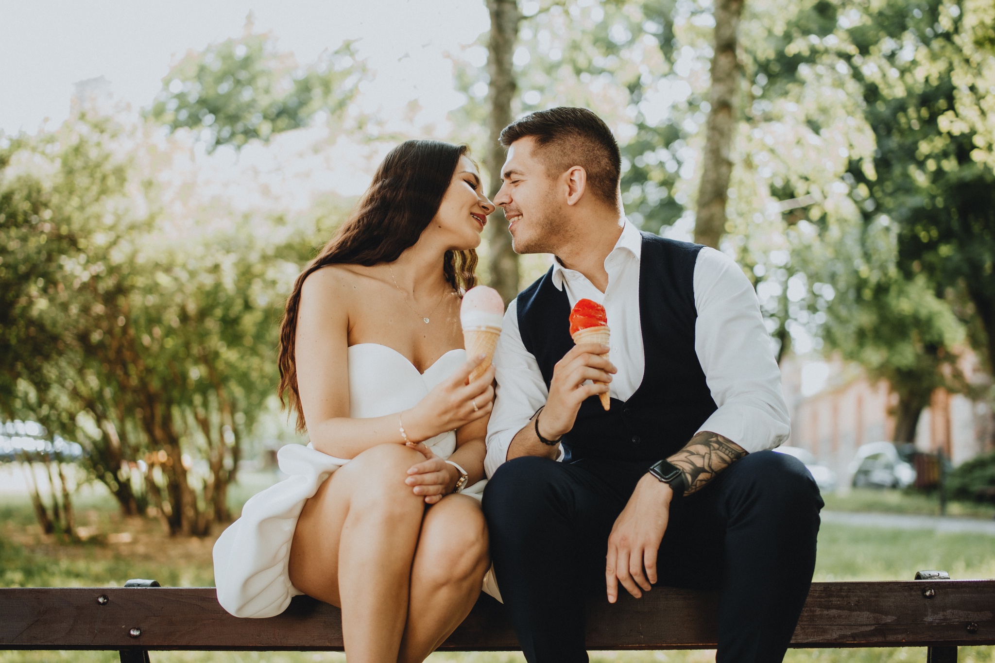 Elegancja, prostota oraz szyk. Wydaje nam się, że te trzy słowa idealnie pasują do Kasi oraz Daniela oraz ich reportażu ślubnego. Miało być delikatnie, ze smakiem – z pewnością takie były lody w Barlinku, które pięknie nam uzupełniły sesję narzeczeńską.